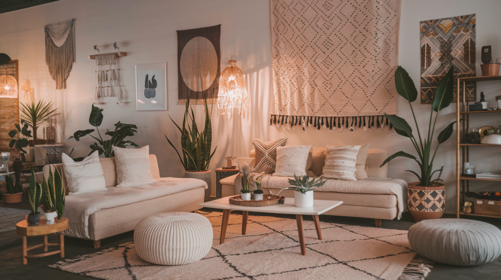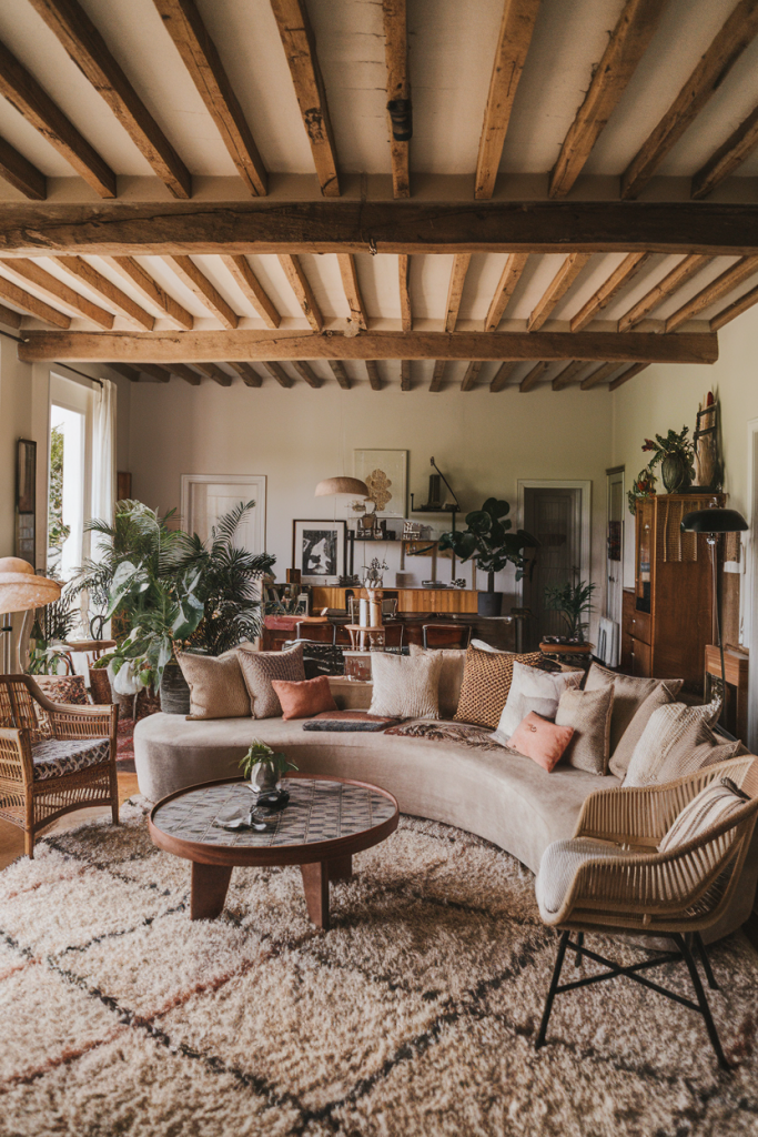 Boho design loves natural materials. Wood, rattan, and jute are popular choices. Plants play a big role too, bringing life to the space.