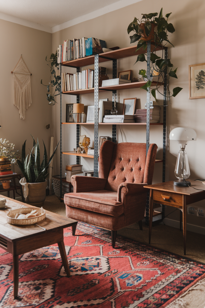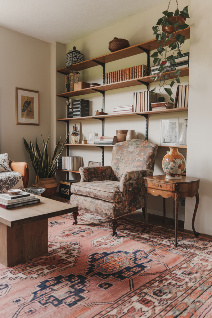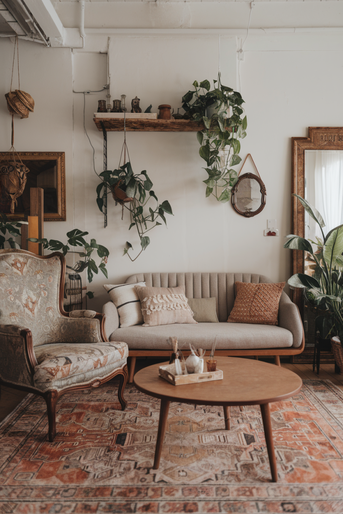 Vintage pieces add charm and history to a boho living room. Look for old wooden dressers, cabinets, or bookshelves at flea markets or thrift stores. These can be painted or left as-is for a rustic look.