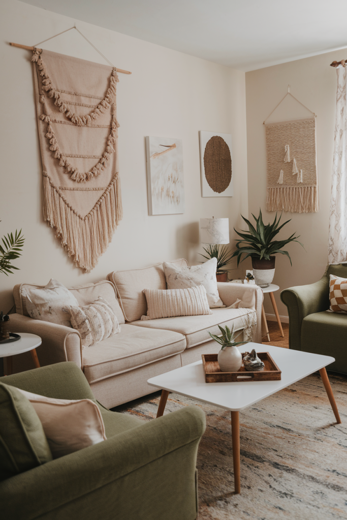 For wall decor, macramé hangings are perfect. Their knotted designs bring texture and a handmade feel. Hang one above the sofa as a focal point.